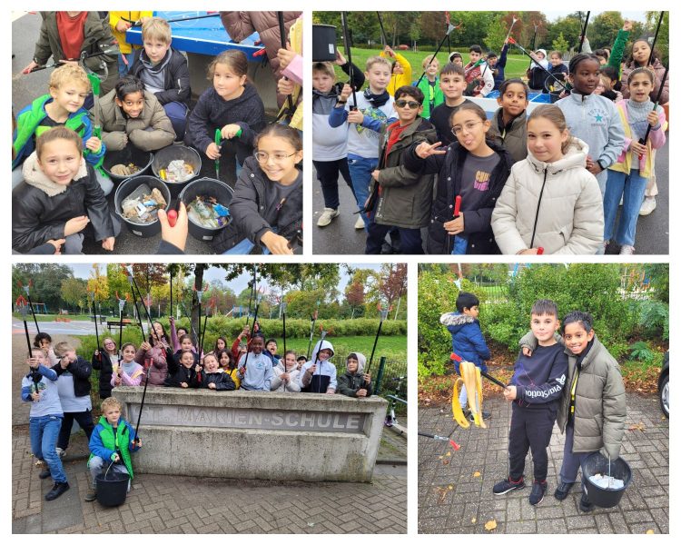 In der Woche vor den Herbstferien war es wieder so weit: Die Müllsammelwoche stand auf dem Plan. Die Schülerinnen und Schüler der St. Marien-Schule sammelten bei herbstlichem Wetter eifrig rund um die Schule und in der näheren Umgebung nach dem, was andere Menschen achtlos und gedankenlos weggeworfen hatten: Müll.
